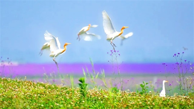 暮春渐远初夏来,最美人间五月天。走进盐城市蟒蛇河水上文化生态廊道,仿佛进入了一幅天然的唯美画卷之中。粉色的月见草、紫色的鼠尾草还有各种颜色的月季花竞相绽放,将整个蟒蛇河装扮得色彩斑斓,在阳光下尽显婀娜身姿,目之所及、绿意弥漫、繁花似锦、让人倍感惊艳。市民游客们来到这里,赏景、露营、垂钓,感受身心与大自然产生的奇妙共鸣。大家在享受优美风光、感受良好生态的同时,又能体验到当地里下河的人文气息,来一场浪漫的夏日之旅,体验盐都水乡的繁花绚美。