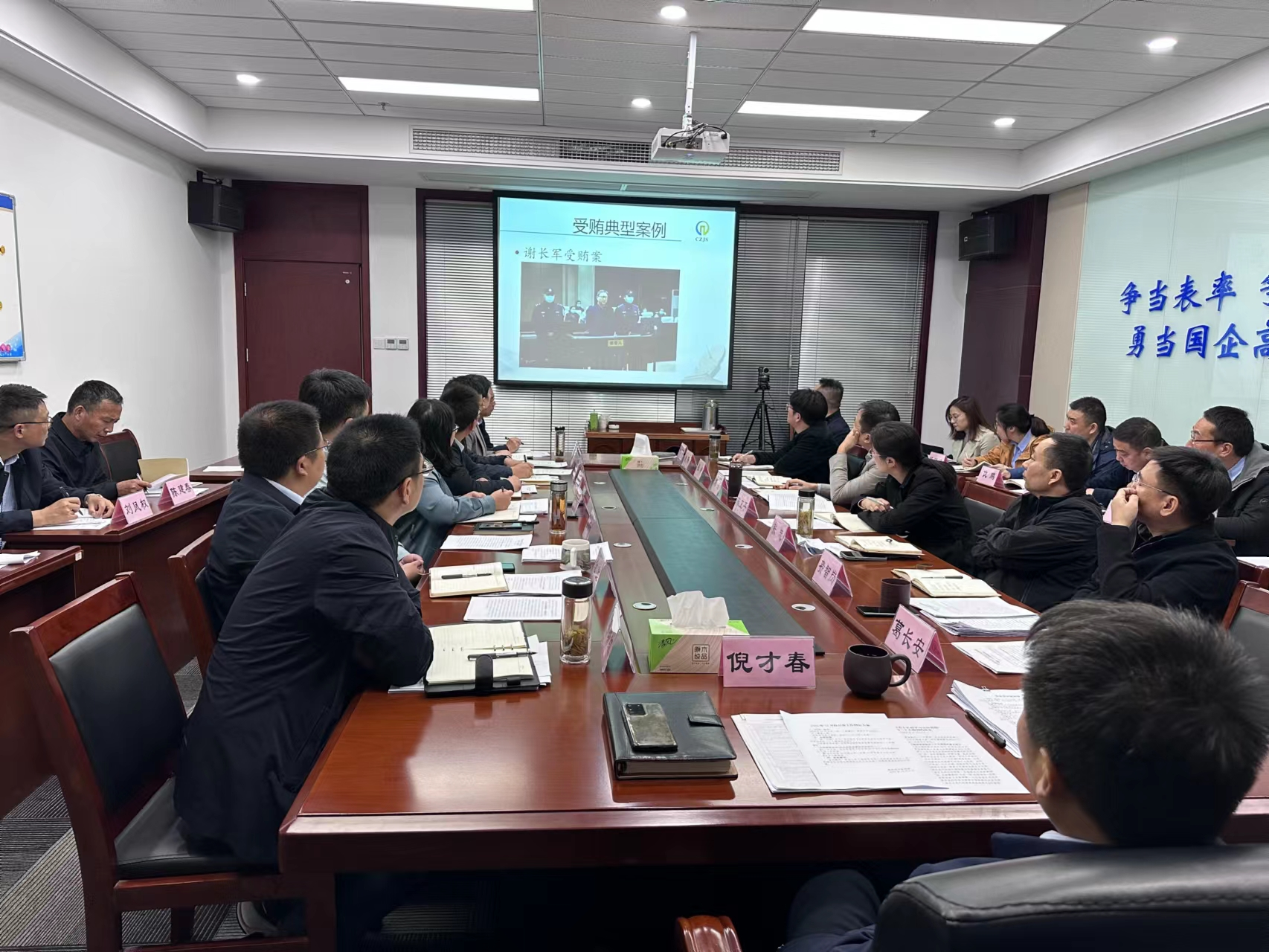 培训首先通过受贿罪的现实案例,让大家形象直观地感受到受贿罪在定罪量刑方面的从严性和惩治性。紧接从《中华人民共和国刑法》对受贿罪的释义出发,分析受贿罪的犯罪构成,重点就受贿罪的“行为主体”、“利用职务上的便利”、“受贿行为”、“为他人谋取利益”等四个构成要素进行深入剖析,通过真实案例与现场互动相结合,揭开了“受贿罪”的神秘面纱。最后全体成员共同学习了受贿罪的定罪量刑,从而深化了受贿行为严重性的认知。
