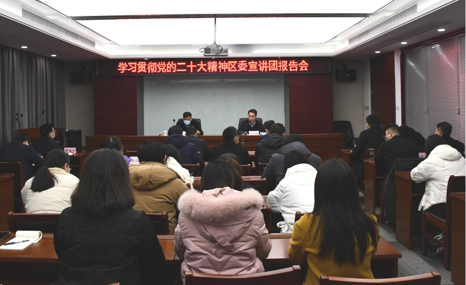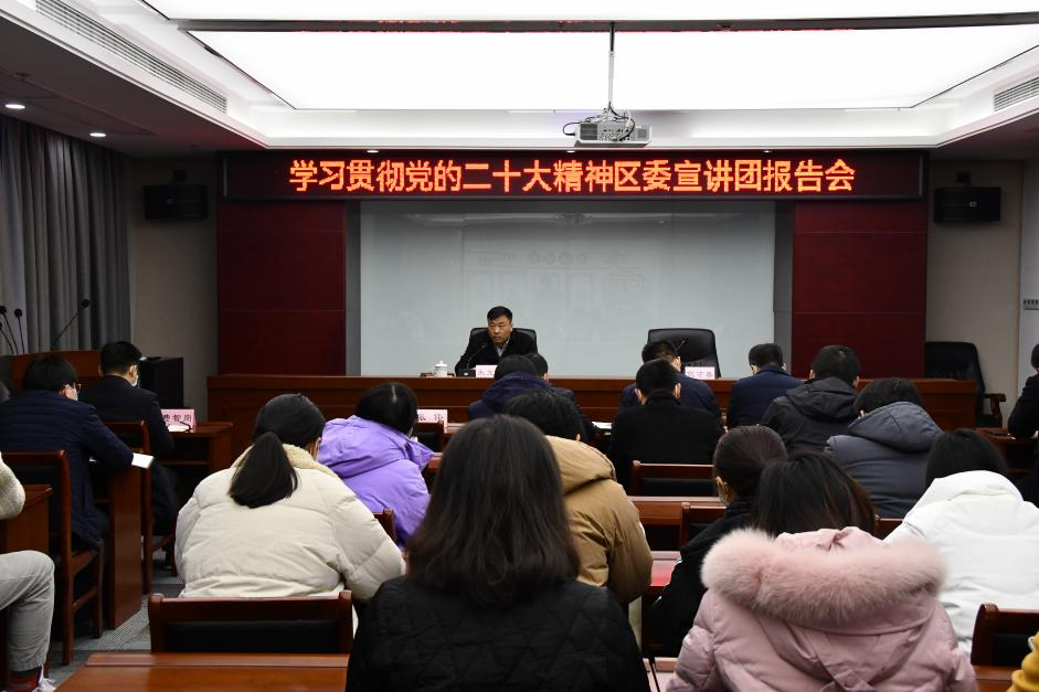 报告会上,朱龙成局长结合当前国际、国内形势和我区经济社会发展现状,从七个方面全面系统地解读了二十大精神,宣讲主线清晰、深入浅出、引人深思。与会人员一致表示,宣讲报告既有政治高度、又有理论深度,听后获益匪浅,将以此次宣讲为契机,学深悟透、学以致用,全面学习宣传贯彻落实党的二十大精神。