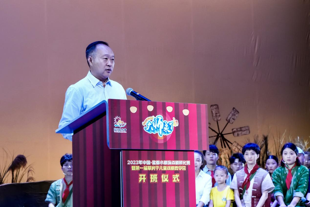 罗时荣在开班致辞中向来自全国各地近百名编剧、表、导演学员提出殷切期望,希望通过此次深度孵化,破局突围,突出文旅融合的属性,孵化出四部既能独立演出又可服务草房子景区的儿童剧剧目,实现景区魅力和文化戏剧艺术的和谐共生。