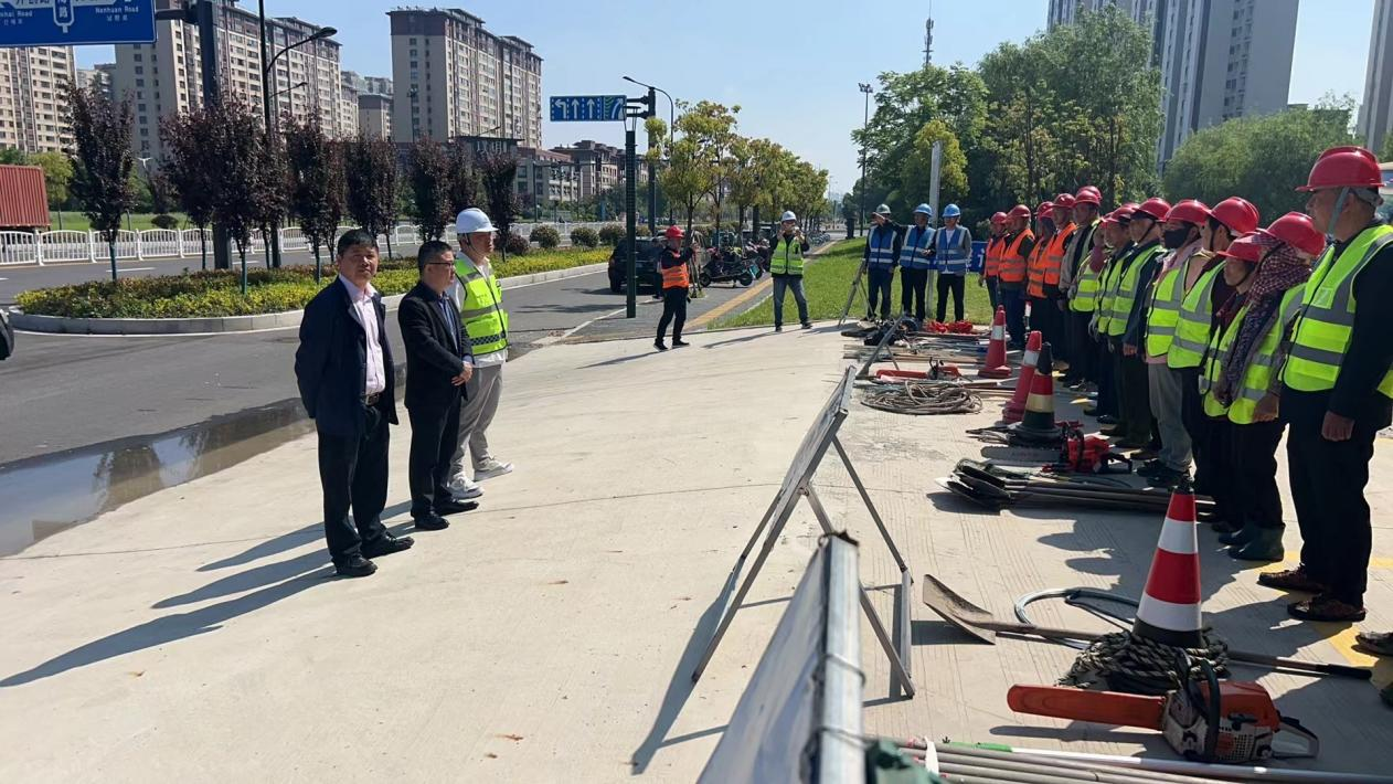 本次演练设定了台风过后树木倒伏、市政积水等险情背景,巡查人员发现问题后,第一时间汇报指挥部,指挥部立即启动应急预案,应急队伍在周边设置防护安全措施,引导行人车辆通行,同时对倒伏树木、积水路段进行全面检查,做好后续疏通恢复。