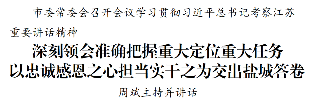 市委常委会召开会议学习贯彻习近平总书记考察江苏重要讲话精神