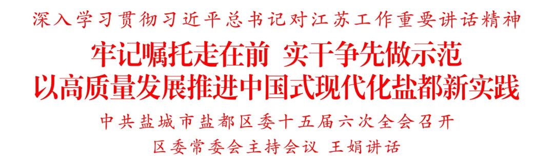 全会审议通过《中国共产党盐城市盐都区第十五届委员会第六次全体会议决议》。