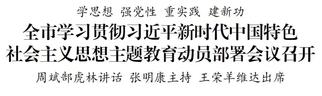 周斌指出,在全党深入开展学习贯彻习近平新时代中国特色社会主义思想主题教育,是党中央作出的重大决策,是贯彻落实党的二十大精神的重大举措。全市各级党组织和广大党员干部要深入学习贯彻习近平总书记重要讲话精神,学深悟透、对标对表,深刻认识开展主题教育的重大政治意义、理论意义、实践意义,自觉把高标准高质量开展主题教育作为坚定拥护“两个确立”、坚决做到“两个维护”的实际行动,作为推进中国式现代化走在前做示范的强大动力,作为强化党性淬炼、解决大党独有难题的重要载体,切实增强看齐追随的政治自觉、实干争先的行动自觉、自我革命的时代自觉,把思想和行动统一到中央和省委决策部署上来,以饱满的政治热情、强烈的使命担当、扎实的工作举措,把主题教育抓出高质量好效果。